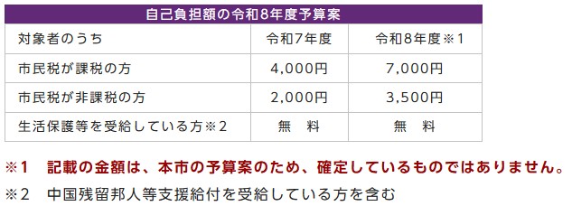 また、案内に同封している予診票や、令和7年度に発行している自己負担区分証明書についても、令和8年4月1日以降は使用できませんので、合わせてご注意ください。